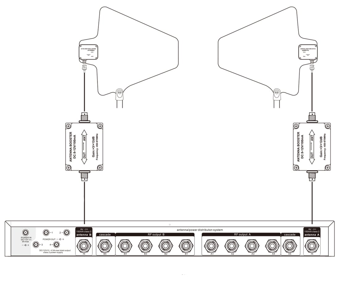 各リレー アンプは、最長 35 メートルのケーブルの回線損失を補償できるため、アンテナ システムの補助として最適です。