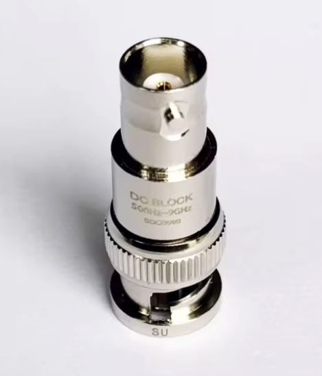 0.5KHz~9GHzの周波数範囲に対応するBNCコネクタを備えたDCブロック(直流阻止器)です。主に無線周波数(RF)機器やテスト機器の保護に使用されるパッシブコンポーネントです