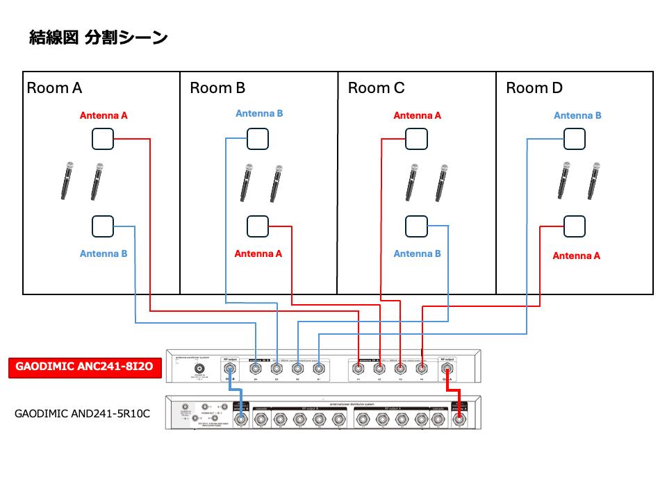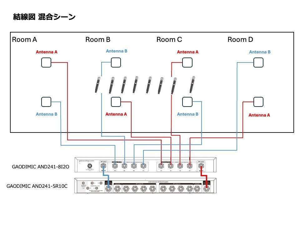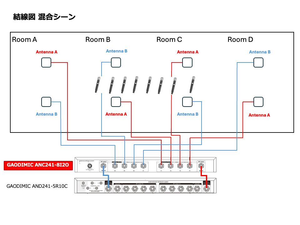 ワイヤレスシステムの機能は、8つのアンテナ信号をワイヤレス受信機用の2つのチャンネルに統合することで確立されます。